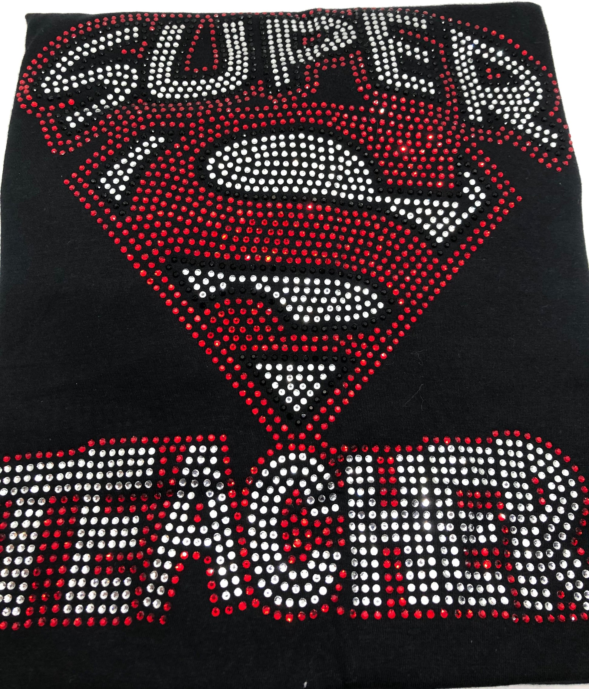 Black Soft Style Gildan T-shirt with All Rhinestone screen with black outline