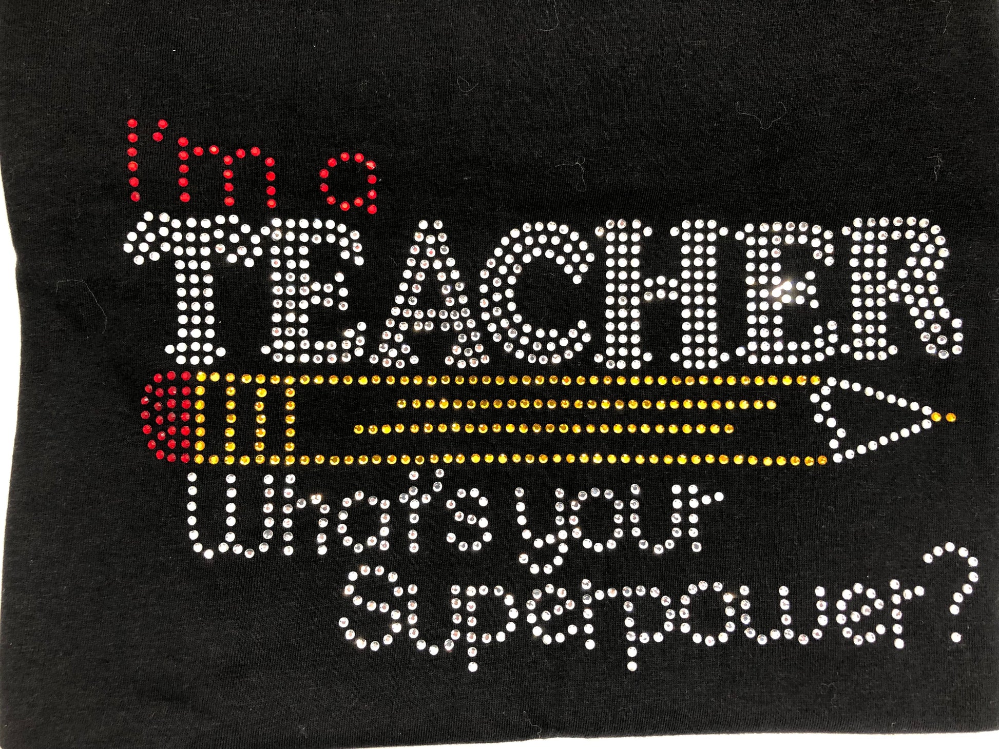 Enhance your wardrobe with our Gildan Soft Style T-shirt, adorned with stunning rhinestones. Perfect for showcasing your unique style and showing off your super powers. Expertly crafted for comfort and style, this black T-shirt is a must-have for any fashion forward individual.